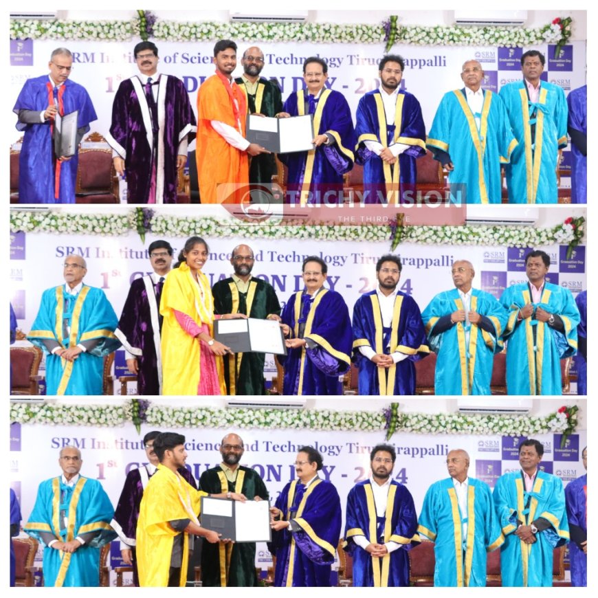 எஸ்.ஆர்.எம் அறிவியல் மற்றும் தொழில்நுட்பக் கல்வி நிறுவனம், திருச்சிராப்பள்ளி, நிகர்நிலைப் பல்கலைக்கழகத்தின் முதல் பட்டமளிப்பு விழா 2024 ஆம் ஆண்டு டிசம்பர் 07 அன்று எஸ்.ஆர்.எம் கலையரங்கத்தில் காலை 11 மணி முதல் பிற்பகல் 1 மணி வரை நடைபெற்றது. இவ்விழாவில் பட்டம் பெற்ற 260 மாணவர்கள், அவர்களின் பெற்றோர், கல்வியாளர்கள் மற்றும் சிறப்பு விருந்தினர்கள் கலந்து கொண்டனர்.