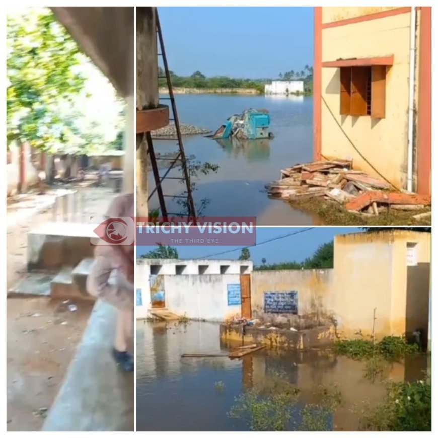திருச்சி மாவட்டம் மணிகண்டம் ஒன்றியம் இனாம்மாத்தூர் மேல்நிலைப்பள்ளியில் சுமார் 450க்கும் மேற்பட்ட மாணவ, மாணவிகள் படித்து வருகின்றனர். சென்ற வாரம் புதன்கிழமை மாலை முதல் வெள்ளிக்கிழமை இரவு வரை இடைவிடாமல் பெய்த கனமழை பள்ளி சுற்றி மழைநீர் சூழ்ந்து உள்ளது.