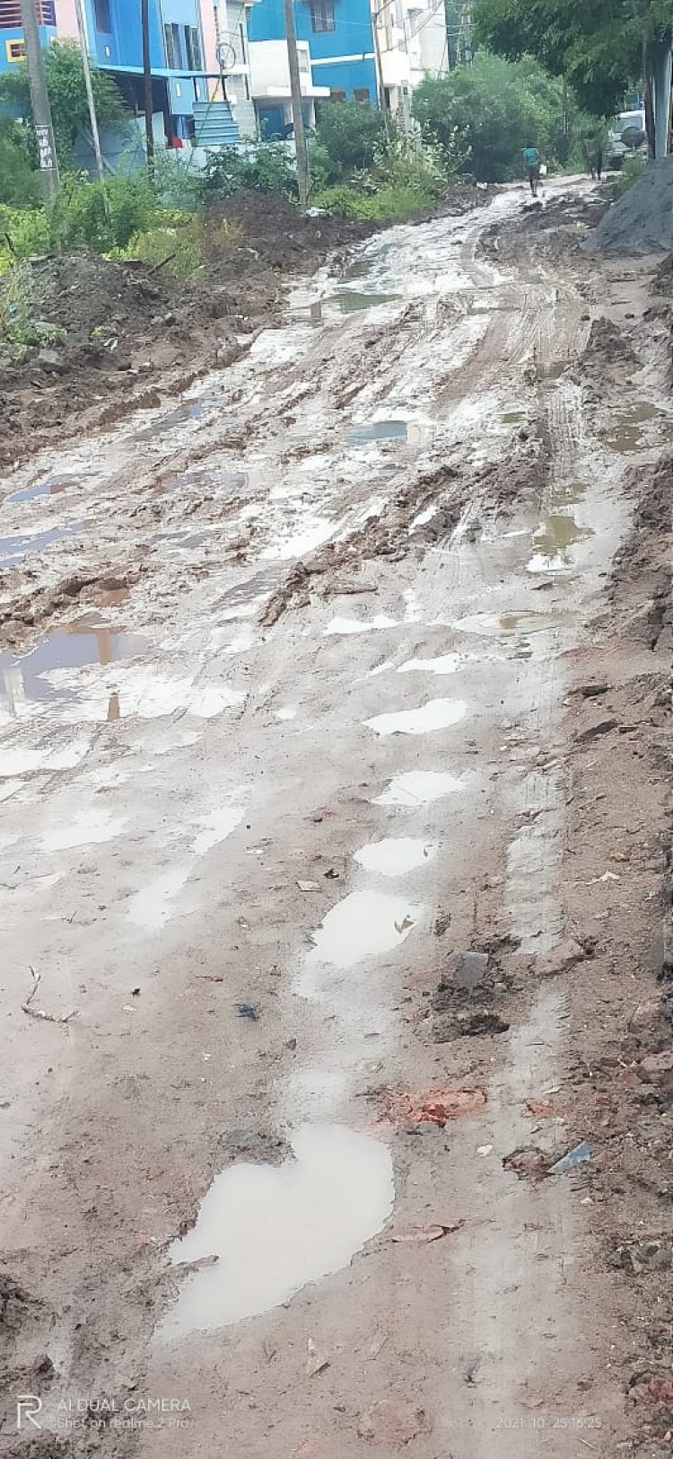 தற்போது பெய்து வரும் தொடர் மழையின் காரணமாக மழை நீர் வெளியேற வழி இல்லாததால் இந்த அலுவலகங்களுக்குச் செல்லும் சாலை முற்றிலும் சேதமடைந்து சேறும் சகதியுமாக உள்ளது. இதனால் அரசு அலுவலகங்களுக்குச் செல்லும் பணியாளர்கள் மற்றும் அலுவலர்கள் சகதியில் சிக்கி விபத்து ஏற்பட்டுள்ளது.