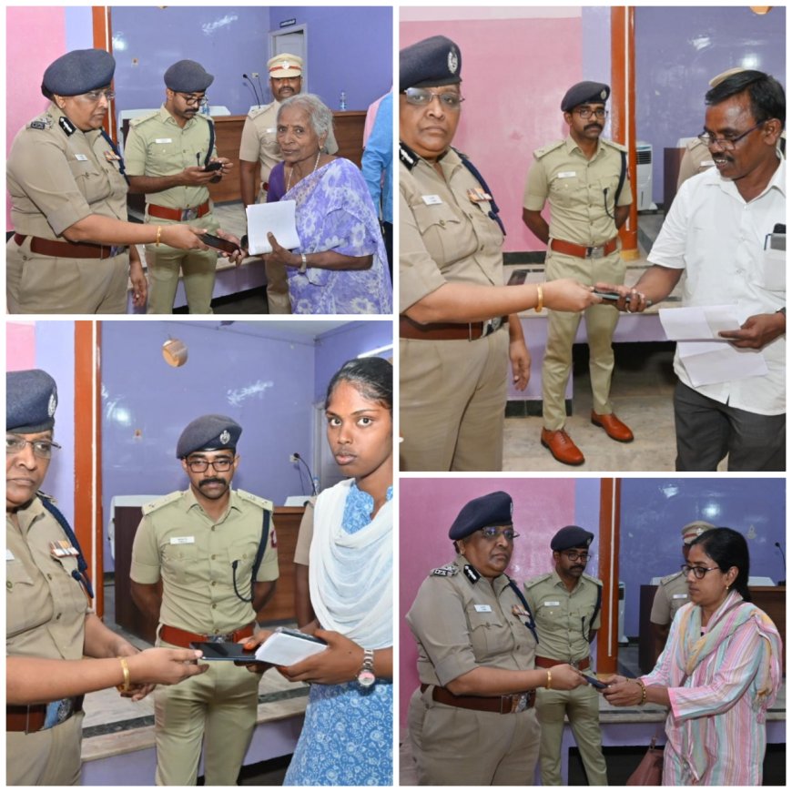 அதன்படி, பொதுமக்கள் கொடுத்த புகாரின்படி கடந்த டிசம்பர் மற்றும் ஜனவரி மாதங்களில் காணாமல் போன செல்போன்கள் பற்றிய விசாரணை செய்து நடவடிக்கை எடுத்ததில் மொத்தம் 95 ஆன்டிராய்டு செல்போன்கள் (மதிப்பு சுமார் ரூ.13,50,000/-) கண்டுபிடித்தும், மீட்டும் அதனை இன்று (23.04.2025)-ந்தேதி திருச்சி மாநகரம் கே.கே.நகர் ஆயுதப்படை சமுதாய கூடத்தில் செல்போன்களின் உரிமையாளர்களிடம் காவல் ஆணையர் காமினி ஒப்படைத்தார்கள். இந்நிகழ்வின்போது காவல் ஆணையர்கள் (வடக்கு & தெற்கு), காவல் உதவி ஆணையர்கள் மற்றும் காவல் ஆய்வாளர்கள் உடனிருந்தார்கள்.