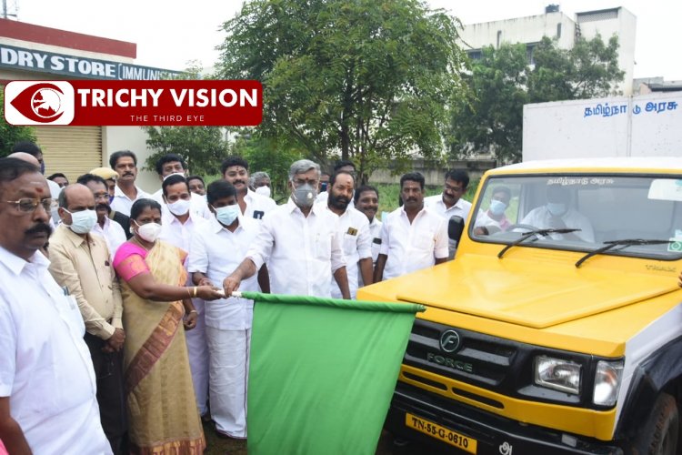 திருச்சி அண்ணா விளையாட்டு அரங்கம் அருகே உள்ள மாவட்ட சுகாதார துறை இணை இயக்குனர் அலுவலகத்தில் கோவிட் தடுப்பூசி சேமிப்பு கிடங்கில் உள்ள கொரோனா தடுப்பூசியை சுகாதாரத்துறை அமைச்சர் விஜயபாஸ்கர், அமைச்சர்கள் வெல்லமண்டி நடராஜன், வளர்மதி மாவட்ட ஆட்சியர் சிவராசு ஆய்வு செய்தார். தொடர்ந்து கோவிட் தடுப்பூசி ஏற்றபட்ட வாகனங்களில் பெரம்பலூர், அரியலூர், தஞ்சாவூர், நாகப்பட்டினம், புதுக்கோட்டை, திருவாரூர் உள்ளிட்ட மாவட்டங்களுக்கு கோவிட் தடுப்பூசியை கொடியசைத்து அனுப்பி வைத்தனர்.