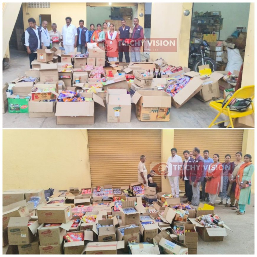 மேலும் அந்த மொத்த விற்பனையாளரின் உணவு வணிகத்தை ஆய்வு செய்த போது அங்கு காலாவதியான உணவு பொருட்கள் சுமார் 800 கிலோ பறிமுதல் செய்யப்பட்டு அரியமங்கலம் குப்பை கிடங்கில் அழிக்கப்பட உள்ளது. மேற்கண்ட சம்பவத்தில் பயன்படுத்தப்பட்ட அதே பேட்ச் எண் கொண்ட கோக் குளிர்பானத்தையும் சட்டபூர்வ உணவு மாதிரி எடுக்கப்பட்டுள்ளது.