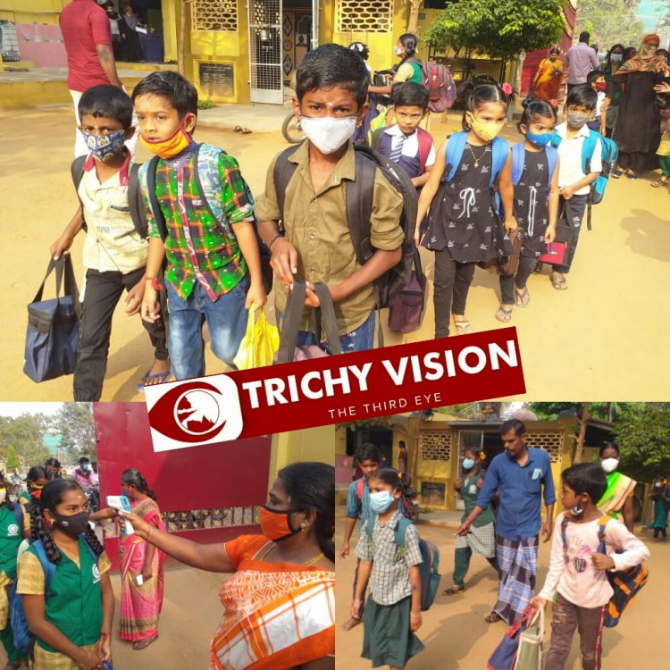 திருச்சியில் உற்சாகத்துடன் பள்ளிக்கு வந்த மாணவ – மாணவிகள்