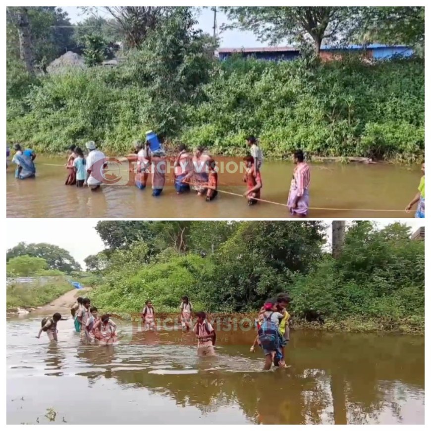 இங்கு உள்ள மாணவ மாணவிகள் நகரப் பகுதியான துறையூரில் உள்ள பள்ளிக்கூடங்களில் கல்வி பயின்று வருகின்றனர். மேலும் இப்பகுதியில் பத்து நாட்களுக்கு மேல் கடந்தும் மழைநீர் வடியாத காரணத்தினால் இங்கிருந்து பள்ளிக்கு செல்லும் மாணவ மாணவிகள் ஆற்றில் இறங்கி நீரில் நனைந்தபடியே மிகவும் சிரமத்தோடு துறையூர் பகுதியில் உள்ள பள்ளிக்கு செல்கின்றனர்.
