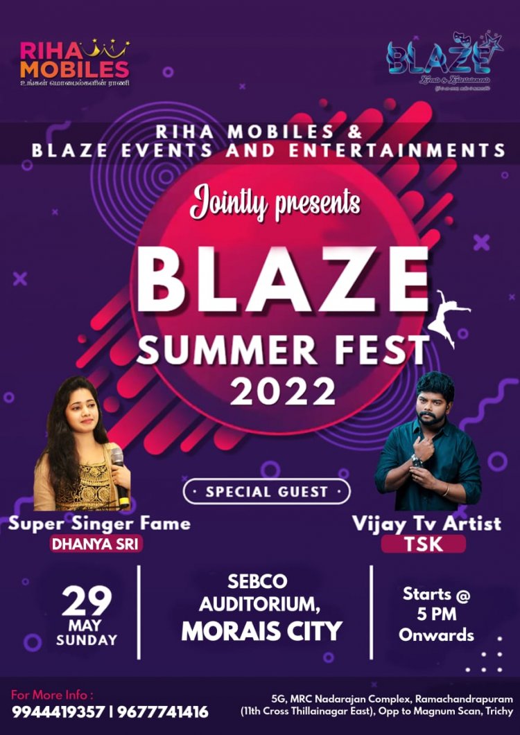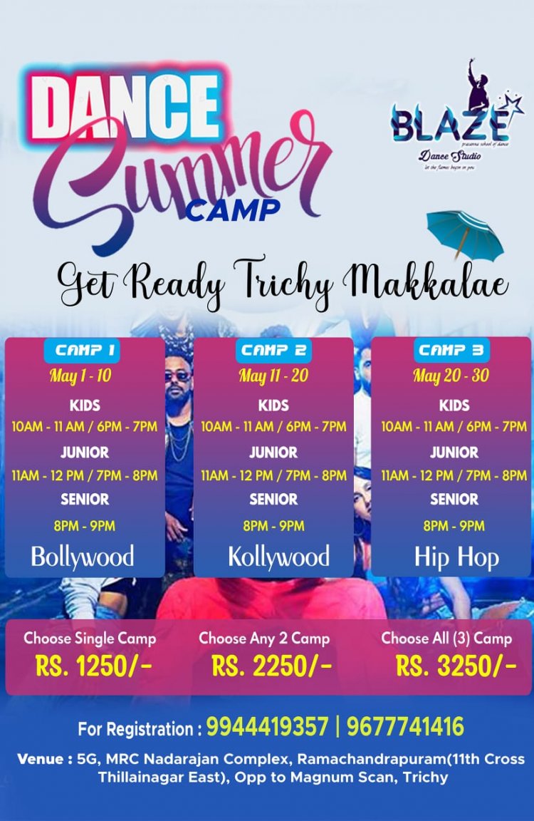 கோடைகால விடுமுறை தினத்தை பயனுள்ளதாக மாற்றும் வகையில் திருச்சி தில்லை நகரில் செயல்பட்டு வரும் blaze டான்ஸ் ஸ்டூடியோவில் மூன்று கட்டமாக கோடைகால சிறப்பு நடன வகுப்புகள் நடைபெற உள்ளது.