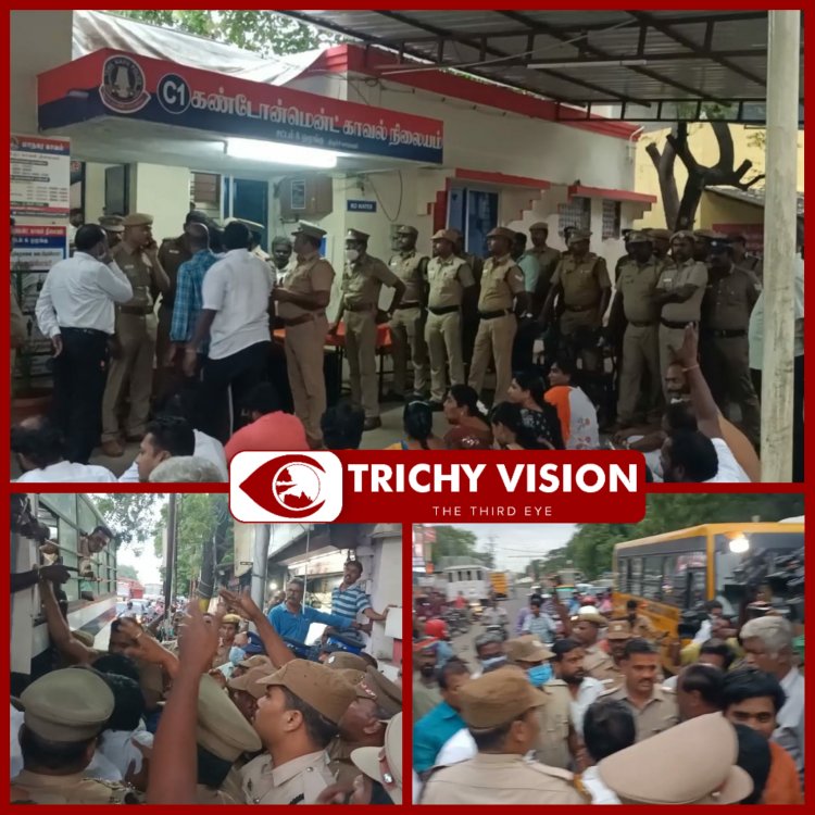 இதுகுறித்து தகவலறிந்த பாரதிய ஜனதா கட்சியின் மாவட்ட தலைவர் ராஜசேகர் தலைமையில் கட்சியினர் 20க்கும் மேற்பட்டோர் கண்டோன்மென்ட் காவல் நிலைய முன்பு அமர்ந்து தர்ணாவில் ஈடுபட்டு வருகின்றனர். இதன் காரணமாக அசம்பாவிதங்கள் ஏற்படாத வகையில் அப்பகுதியில் காவல்துறையினர் குவிக்கப்பட்டு உள்ளனர்.