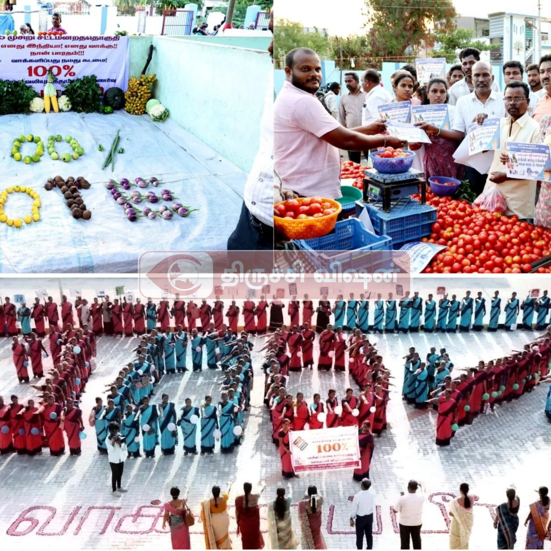 திருவெறும்பூர் தொகுதியில் மாணவர்கள் மற்றும் பொதுமக்கள் இணைந்து பேரணி நடத்தி வாக்காளர் விழிப்புணர்வை பரப்பினர். முசிறி தொகுதியில் சந்தை பகுதியில் காய்கறிகள் மூலம் ‘100% வாக்களிப்பு’ குறியீடு உருவாக்கி பொதுமக்களுக்கு விழிப்புணர்வு செய்தி வழங்கப்பட்டது.லால்குடி மற்றும் மணச்சநல்லூர் தொகுதிகளில் சுகாதாரத்துறை மற்றும் சமூக நலத்துறை சார்பில் பொதுமக்களுக்கு வாக்கு பதிவு முக்கியத்துவம் குறித்து எடுத்துரைக்கப்பட்டது. பல இடங்களில் உறுதிமொழி ஏற்பும் நடைபெற்றது.