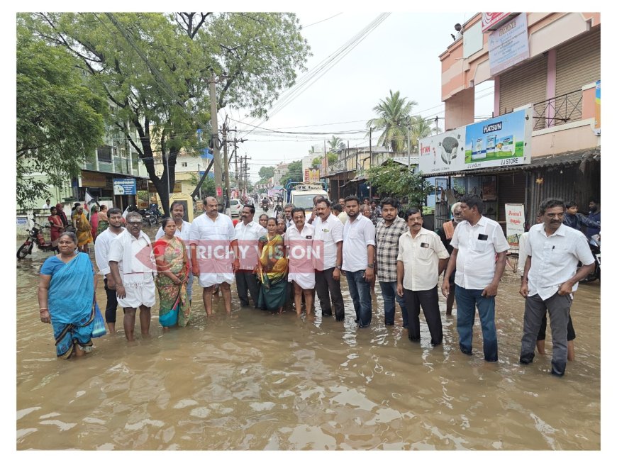 இதனால் பொதுமக்கள் பெரும் சிரமத்திற்கு ஆளாகி உள்ளனர். இதனை தொடர்ந்து நகராட்சி நிருவாகத்துறை அமைச்சர் நேரு, மாவட்ட ஆட்சியர் நேரு, மாநகராட்சி மேயர் அன்பழகன் மற்றும் அரசு அதிகாரிகள் மழைநீர் சூழ்ந்துள்ள குடியிருப்பு பகுதிகளை பார்வையிட்டனர்.