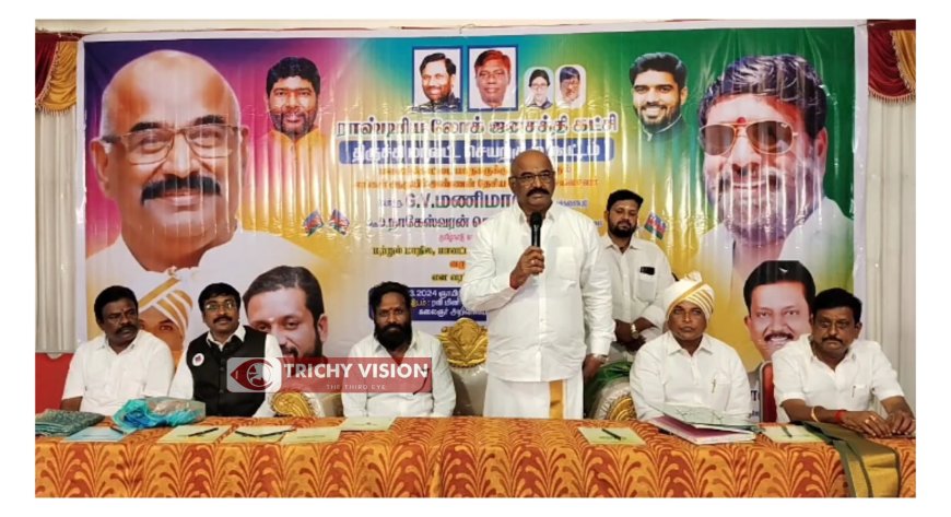 ராஷ்டிரிய லோக் ஜனசக்தி கட்சியின் திருச்சி மாவட்ட செயற்குழு கூட்டம் சத்திரம் பேருந்து நிலையம் அருகே உள்ள தனியார் மண்டபத்தில் இன்று நடைபெற்றது. ராஷ்டிரிய லோக் ஜனசக்தி கட்சி தேசிய பொதுச்செயலாளர் ஜி.வி.மணிமாறன் தலைமையில் நடைபெற்ற இந்த செயற்குழு கூட்டத்தில், தமிழக மாநில தலைவர் நாகேஸ்வரன் தொண்டைமான் உள்ளிட்ட மாநில மாவட்ட நிர்வாகிகள் கலந்து கொண்டனர்.