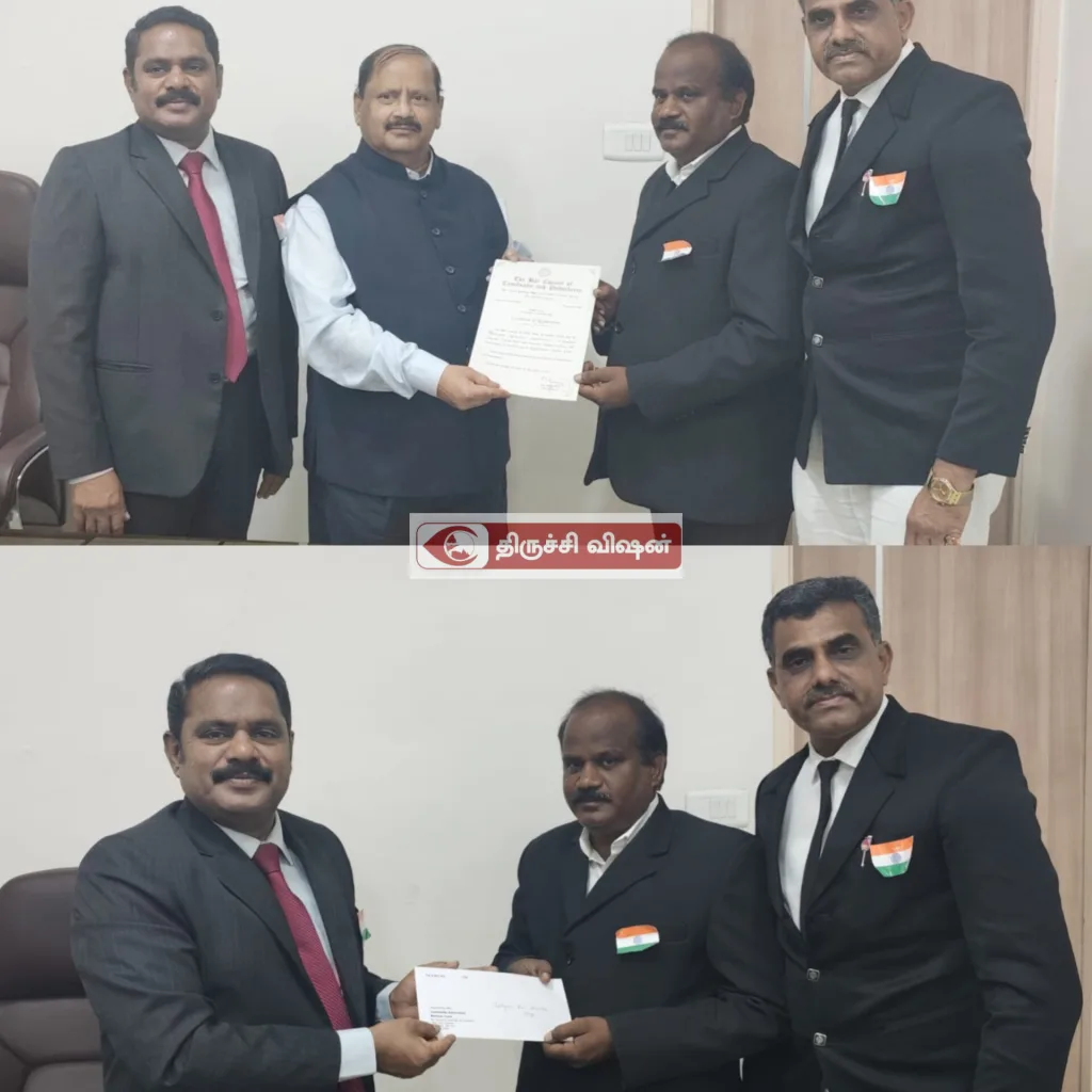 ஆகியோர் வழக்கறிஞர் சங்கத்துக்கான அங்கீகார சான்றிதழை தொட்டியம் வழக்கறிஞர் சங்கத் தலைவர் திரு M. பெரியசாமி அவர்களிடம் வழங்கினார் திருச்சி குற்றவியல் வழக்கறிஞர் சங்க செயலாளர் திரு P. V. வெங்கட் உடன் இருந்தார். மேலும் தமிழ்நாடு பார் கவுன்சில் சேமநல முத்திரை யை பார் கவுன்சில் தலைவர் மரியாதைக்குரிய திரு P. S. அமல்ராஜ் அவர்கள் வழங்கினார்.
