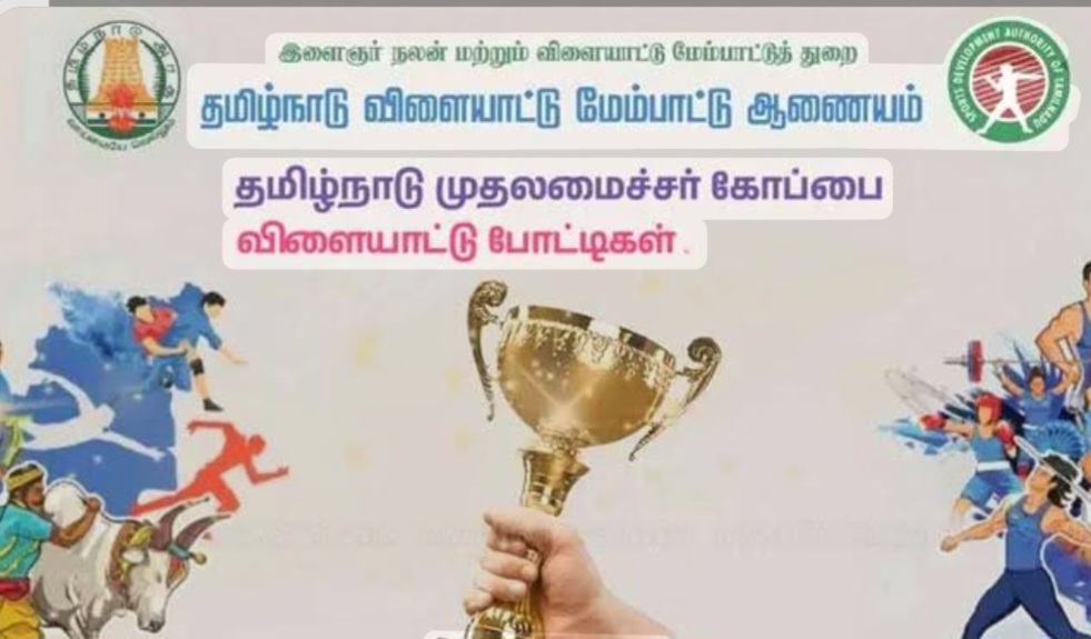 https://cmtrophy.sdat.in/cmtrophy இணையதளம் வாயிலாக வீரர்களின் குழு மற்றும் தனி நபர்களின் அனைத்து விவரங்களை பதிவு செய்ய வேண்டும். முன்பதிவு செய்திட கடைசி நாள் 16.08.2025 ஆகும்