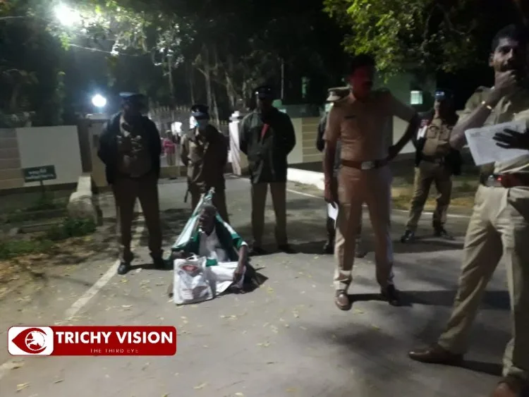 திருச்சியில் மாவட்ட ஆட்சியர் குடியிருப்பு வாயிலில் தமிழக விவசாயிகள் சங்க மாவட்ட தலைவர் ம.ப.சின்னத்துரை போராட்டத்தில் ஈடுபட்டார்.