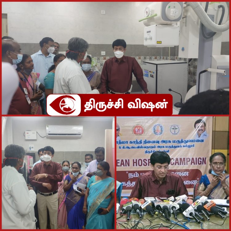 திருச்சி மகாத்மா காந்தி நினைவு அரசு மருத்துவமனை வளாகத்தில் தீவிர சிகிச்சைப் பிரிவு மற்றும் ஸ்கேனிங் பிரிவு ,நோயாளிகளிடம் சிகிச்சை குறித்தும் கேட்டு அறிந்து தமிழக சுகாதாரத்துறை செயலாளர் ராதாகிருஷ்ணன் திடீர் ஆய்வு செய்தார்.
