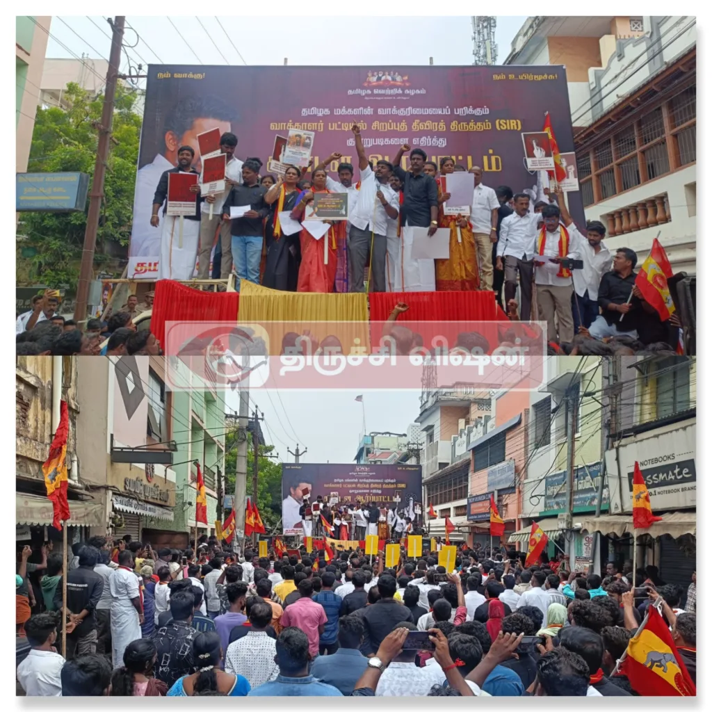 சிறப்பு வாக்காளர் திருத்தப்பட்டியலை எதிர்த்து தமிழக வெற்றி கழகத்தின் ஒருங்கிணைந்த திருச்சி மாவட்டத்தின் சார்பாக மலைக்கோட்டை சறுக்கு பாறை பகுதியில் மாநில கொள்கை பரப்புச் செயலாளர் ராஜ்மோகன் தலைமையில் நடைபெறுகிறது.