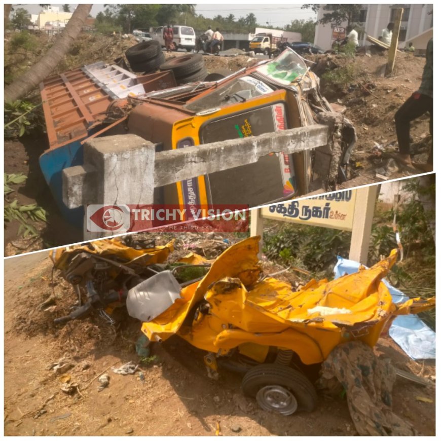 இதற்கிடையில் மேற்கிலிருந்து கிழக்கு நோக்கி திருப்பராய்த்துறைக்கு சென்ற பேசஞ்சர் ஆட்டோ மீது மோதி அருகிலுள்ள அய்யன் வாய்க்காலில் டேங்கர் லாரி கவிழ்ந்தது. இதில் லாரியின் அடியில் பயணிகள் ஆட்டோ சிக்கிக் கொண்டதில் ஆட்டோவில் பயணம் செய்த மூன்று நபர்கள் உடல் நசுங்கி சம்பவ இடத்திலேயே உயிரிழந்தனர். இதனையடுத்து சம்பவ இடத்துக்கு வந்த பட்டவர்களை போலீசார் 2 கிரேன் மூலம் லாரியை அப்புறப்படுத்தி அடியில் இறந்து 3 பேரின் உடலை மீட்டு திருச்சி அரசு மருத்துவமனைக்கு உடற்கூறு பரிசோதனைக்காக அனுப்பி வைத்தனர்.