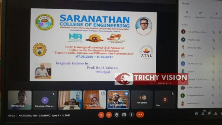 திருச்சி சாரநாதன் பொறியியல் கல்லூரியில் ஜுன் 7ம் தேதி முதல் 11ஆம் தேதி வரை “அறிவாற்றல் வானொலி ஆன்டெனாக்கள் மற்றும் மில்லி மீட்டர் அலை தொடர்பு” (CRAMWC) என்ற தலைப்பில் ஐந்து நாட்கள் இணைய வழியில் தேசிய அளவிலான AICTE பயிற்சி மற்றும் கற்றல் (ATAL) அகாடெமியின் கல்லூரி ஆசிரியர் மேம்பாட்டு திட்டத்தினை கல்லூரியின் எலக்ட்ரானிக்ஸ் துறையில் ஏற்பாடு செய்திருக்கிறது.