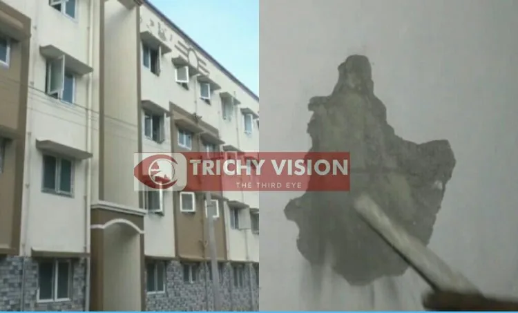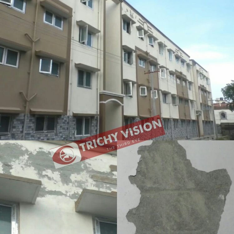 தமிழ்நாடு நகர்ப்புற வாழ்விட மேம்பாட்டு வாரியத்தின் திருச்சிராப்பள்ளி மாநகராட்சி, வார்டு எண் :15ல், தாராநல்லூர் கல்மந்தை அடுக்குமாடி குடியிருப்புத் திட்டப் பகுதியில் கட்டப்பட்டுள்ள அடுக்குமாடி குடியிருப்புகள் தரமற்று இருப்பதாக பொதுமக்களிடமிருந்து புகார் வரப்பெற்றது.