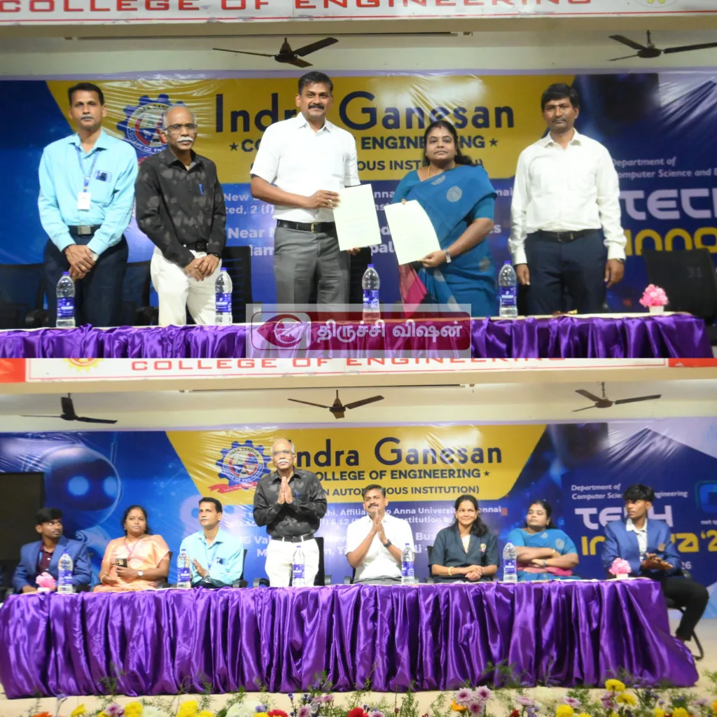இந்திரா கணேசன் பொறியியல் கல்லூரி (தன்னாட்சி), மணிகண்டம், கணினி அறிவியல் மற்றும் பொறியியல் துறை சார்பில், ஜனவரி 31, 2026 அன்று, ஒரு நாள் தேசிய அளவிலான தொழில்நுட்ப கருத்தரங்கான “TECH INNOVZA ’26” சிறப்பாக நடத்தப்பட்டது. இந்நிகழ்வில் பல்வேறு கல்லூரிகளைச் சேர்ந்த சுமார் 1,000 மாணவர்கள் உற்சாகமாக பங்கேற்றனர்.