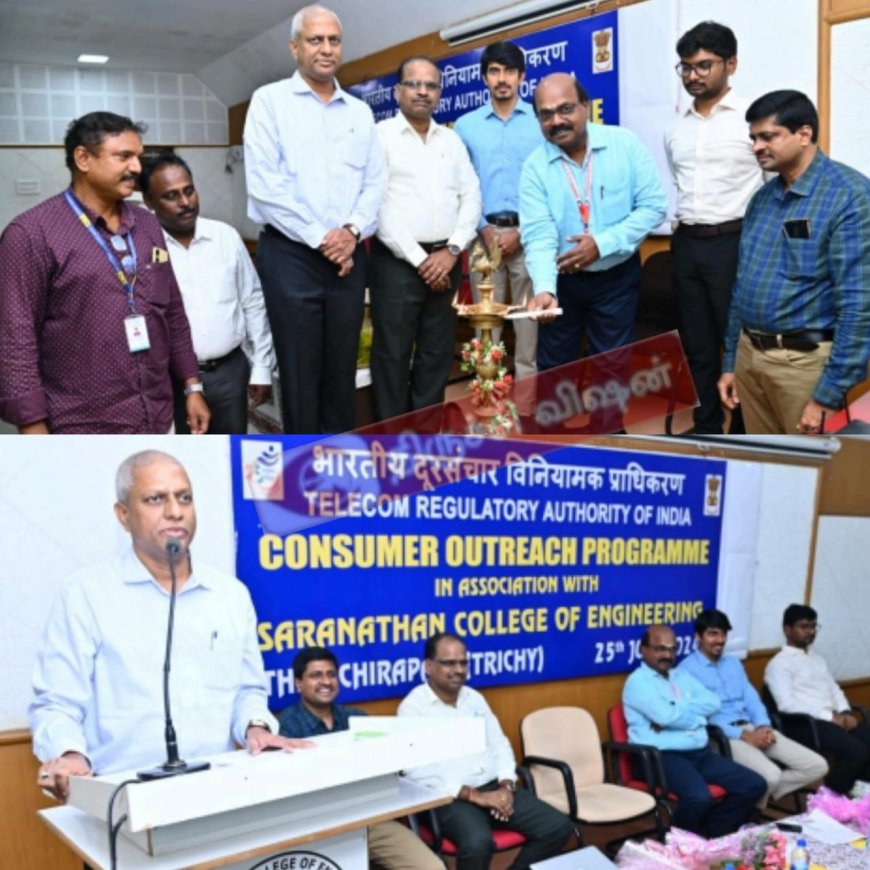 இந்திய தொலைத்தொடர்பு ஒழுங்குமுறை ஆணையம் TRAI தொலைத்தொடர்பு நுகர்வோர் மத்தியில் அவர்களின் உரிமைகள் மற்றும் சலுகைகள் பற்றி விழிப்புணர்வு ஏற்படுத்தும் வகையில் (25.07.24) அன்று சாரநாதன் பொறியியல் கல்லூரியில் டெலிகாம் நுகர்வோர் அவுட்ரீச் நிகழ்ச்சியை நடத்தியது.
