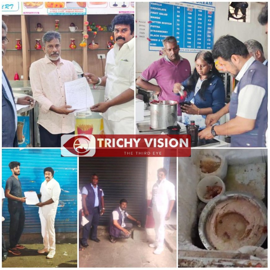 பொதுமக்களிடம் இருந்து வந்த புகாரை அடுத்து மத்திய தபால் நிலையம் எதிரில் உள்ள பிரபல ஐஸ்கிரீம் நிறுவனம் மற்றும் மெயின் கார்டு கேட்டில் உள்ள பிரபல துணிக்கடையில் உள்ள உணவகம் ஒன்றிலும் ஆய்வு செய்யததில்