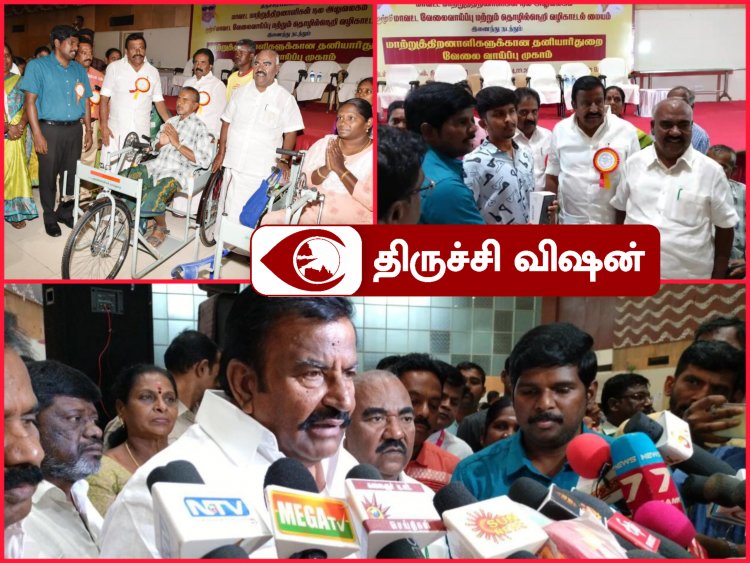 திருச்சி கலையரங்கம் திருமண மண்டபத்தில் மாவட்ட நிர்வாகம், மாவட்ட மாற்றுத்திறனாளிகள் நல அலுவலகம் மற்றும் மாவட்ட வேலைவாய்ப்பு (மற்றும்) தொழில்நெறி வழிகாட்டல் மையம் இணைந்து மாற்றுத்திறனாளிகளுக்கான தனியார் வேலை வாய்ப்பு முகாம் நடைபெற்றது.