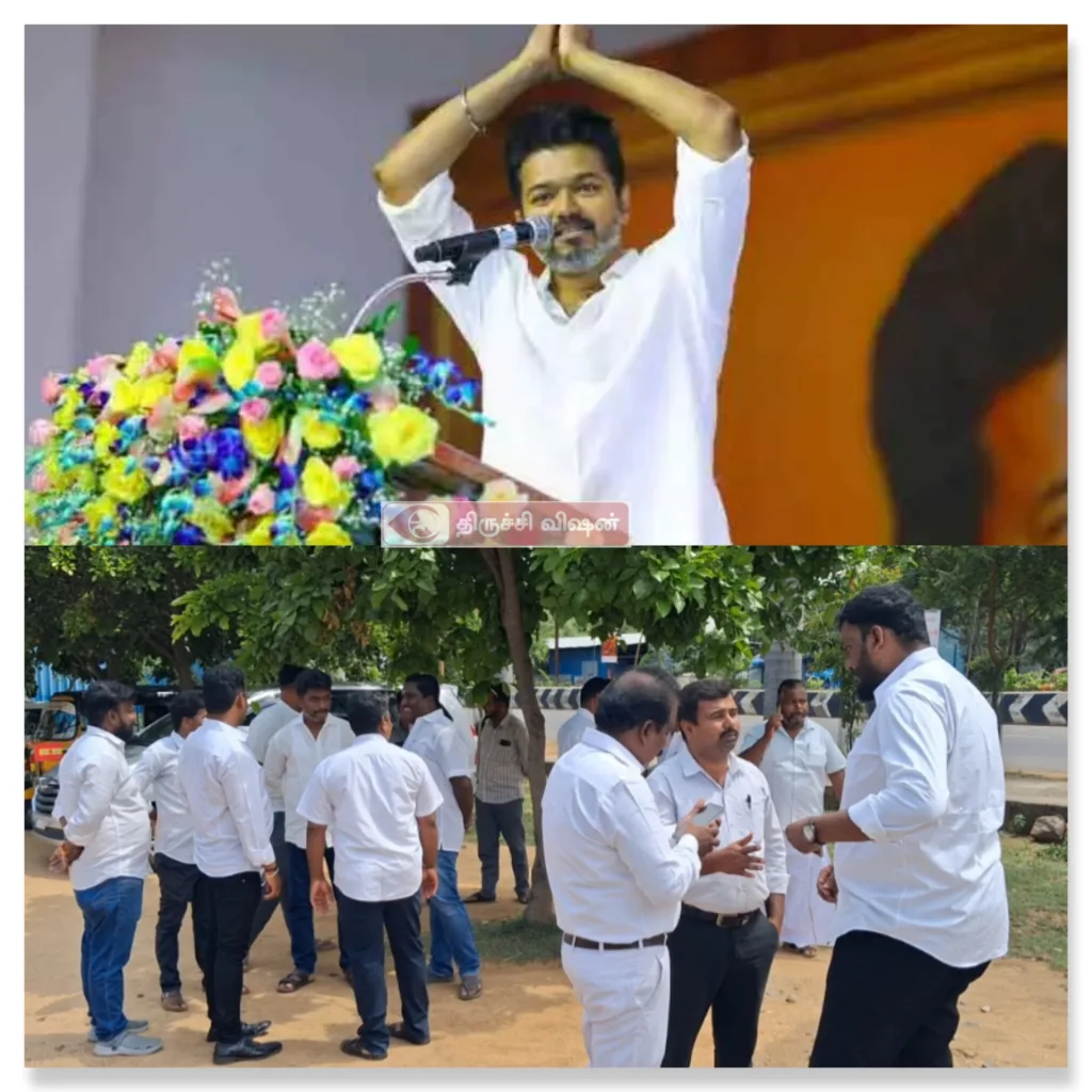 தமிழக வெற்றிக்கழக திருச்சி மாவட்ட நிர்வாகிகள் சத்திரம் பேருந்து நிலையம் எஸ் ஆர் சி கல்லூரி அருகே உள்ள காவல்துறை துணை ஆணையர் அலுவலகத்தில் மீண்டும் இன்று காலை 10:30 மணிக்கு மனு அளிக்க உள்ளனர்.