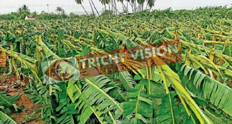 இதன் ஒருபகுதியாக உப்பிலியபுரம் அடுத்த பச்சபெருமாள்பட்டி, எரகுடி, ரெட்டியாபட்டி பகுதிகளில் இரவு சூறைக்காற்றுடன் மழை பெய்தது. இதனால் இப்பகுதியில் விளைவிக்கப்பட்ட பெரும்பாலான வாழை மரங்கள் முறிந்து விழுந்தன.