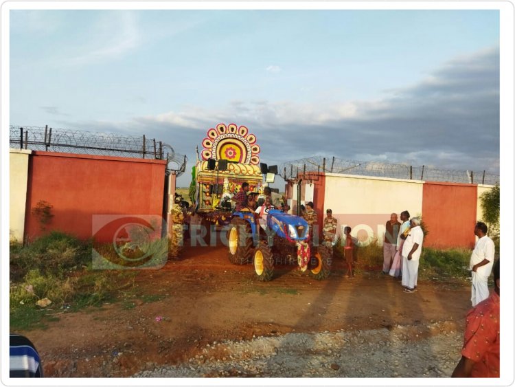 மத்திய தொழில் பாதுகாப்பு படை பாதுகாப்புடன் ரன்வேயில் சென்று, காளியம்மன் கோவிலில் சிறப்பு வழிபாடு செய்தனர். அதன் பின், அதே வழியாக மீண்டும் புறப்பட்ட சப்பரம் ஊர்வலம் கருப்பு கோவிலுக்கு வந்தது. இதில், கோவில் பூசாரிகள் மற்றும் முக்கிய பிரமுகர்கள் மட்டும் அனுமதிக்கப்பட்டனர்.