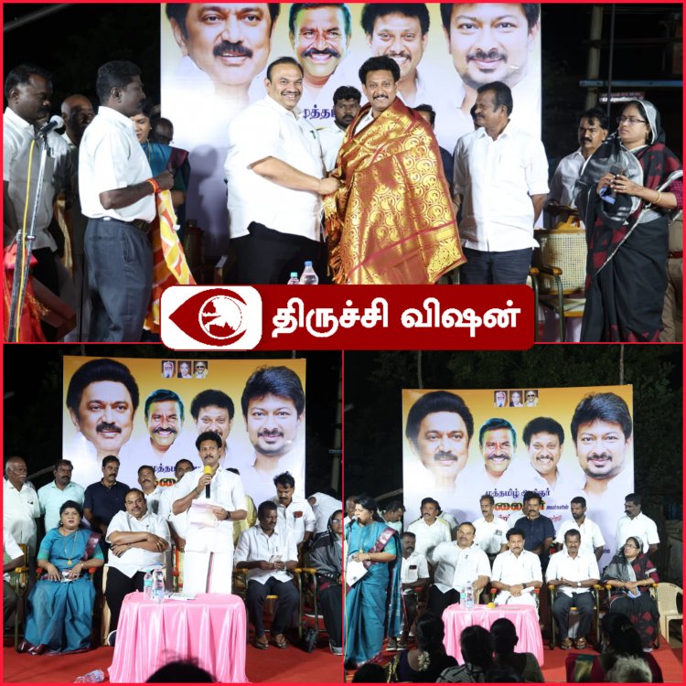 திருச்சி தெற்கு மாவட்ட கழக ஆவின் தொழிலாளர் முன்னேற்ற சங்கம் சார்பில் முத்தமிழறிஞர் டாக்டர் கலைஞர் அவர்களது 99 வது பிறந்த தின விழா மற்றும் கழக அரசின் ஓராண்டு சாதனை விளக்க பொதுக்கூட்டம் கொட்டப்பட்டு இந்திராநகரில் நடந்தது. மாவட்ட கவுன்சில் செயலாளர் ஜோசப் நெல்சன் தலைமை வகித்தார். தமிழக பள்ளிக்கல்வித்துறை அமைச்சரும், திருச்சி தெற்கு மாவட்ட கழக பொறுப்பாளருமான மாண்புமிகு அன்பில் மகேஸ் பொய்யாமொழி தனது சிறப்புரையில் பேசியதாவது.,