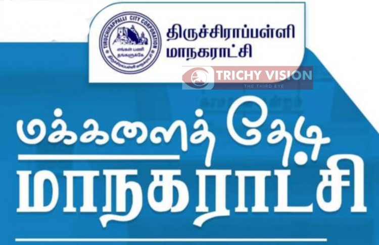 தமிழ்நாடு முதலமைச்சர் மு.க.ஸ்டாலின் ஆணையின்படி நகராட்சி நிர்வாக துறை அமைச்சர் கே.என்.நேரு அறிவுரையின்படி திருச்சி மாநகராட்சி சார்பில் மக்களை தேடி மாநகராட்சி குறை தீர்க்கும் முகாம் ஒவ்வொரு மாதமும் இறுதி புதன்கிழமை அன்று நடைபெற உள்ளது.