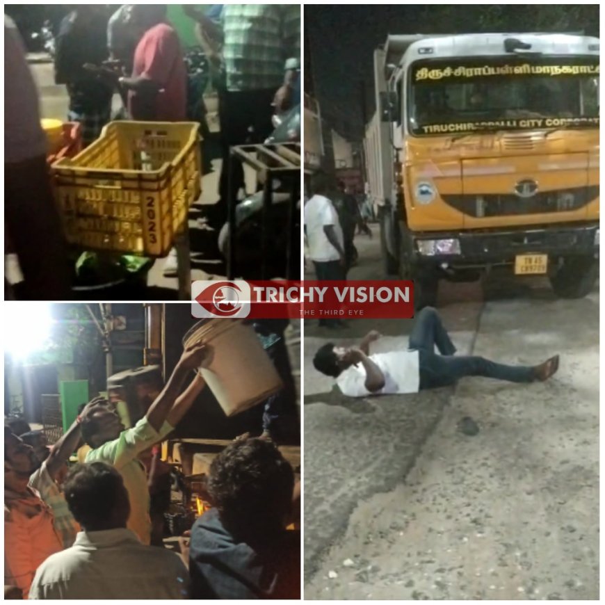 திருச்சி மத்திய பேருந்து நிலையம் அருகிலுள்ள பழைய திருவள்ளுவர் பேருந்து நிலையம், ராகின்ஸ் ரோடு, வில்லியம்ஸ் ரோடு, பாரதிதாசன் சாலை ஆகிய பகுதிகளில் ஏராளமான இரவு நேர சாலையோர உணவகங்கள் இயங்கி வருகின்றன. ஒருசில கடைகள் மாநகராட்சியிடம் உரிய அனுமதி பெற்று மாநகராட்சி சார்பில் வழங்கப்பட்டிருக்கும் பெட்டிகளை அமைத்து அவற்றில் கடைகளை நடத்தி வருகின்றனர்.