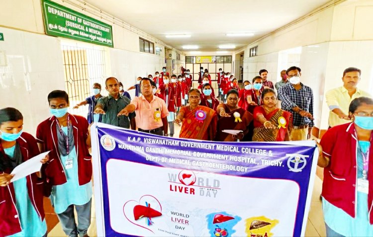 திருச்சி மகாத்மா காந்தி அரசு மருத்துவமனையில் இன்று 19.4.2022 உலக கல்லீரல் தினம் அனுசரிக்கப்பட்டது.வயிறுகழிவு வெளியேற்று செயற்கை துளை சிகிச்சை மையத்தினை (ஸ்டோமா கேர்) தொடங்கி வைத்து மருத்துவமனை முதல்வர் மருத்துவர்.K.வனிதா அவர்கள் பேசியதாவது: