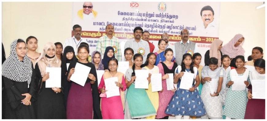 திருச்சிராப்பள்ளி மாவட்டத்திலுள்ள வேலை நாடுநர்களை தனியார் துறைகளில் பணியமர்த்தும் நோக்கத்தோடு, தந்தை பெரியார் அரசு கலை மற்றும் அறிவியல் கல்லூரியில் மாவட்ட நிர்வாகம், மாவட்ட வேலை வாய்ப்பு மற்றும் தொழில்நெறி வழிகாட்டும் மையம் நடத்திய மாபெரும் தனியார் துறை வேலைவாய்ப்பு முகாமில் தேர்வு செய்யப்பட்ட நபர்களுக்கு மாவட்ட ஆட்சித் தலைவர் மா.பிரதீப் குமார் இன்று (17.02.2024) பணிநியமன ஆணைகளை வழங்கினார்.