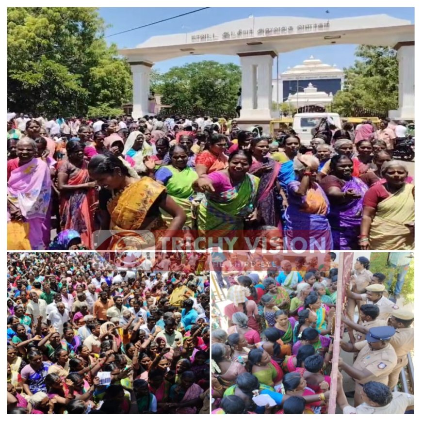 திருச்சி மாவட்டம் ஸ்ரீரங்கம் தொகுதிக்கு உட்பட்ட அதவத்தூர் மற்றும் மணிகண்டம் பகுதியை மாநகராட்சியுடன் இணைப்பதை கண்டித்து 1,500க்கும் மேற்பட்ட அப்பகுதி மக்கள் மாவட்ட ஆட்சியர் அலுவலகத்தை முற்றுகையிட்டு சாலை மறியல் போராட்டத்தில் ஈடுபட்டனர்.