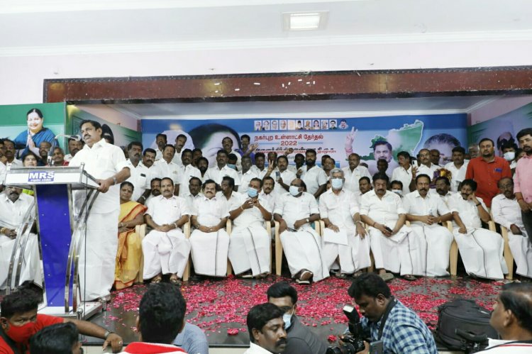 இக்கூட்டத்தில் பேசிய அதிமுக இணை ஒருங்கிணைப்பாளர் எடப்பாடி பழனிசாமி… திருச்சி மாநகராட்சி சிறப்புமிக்க மாநகராட்சி. அதிக உறுப்பினர்களைக் கொண்டு அதிமுகவைச் சேர்ந்தவர் திருச்சி மேயராக வரவேண்டும். அதிமுகவின் வெற்றி உறுதியாகியுள்ளது. முதலமைச்சர் ஸ்டாலின் ஏதோ ஏதோ பேசுகிறார்