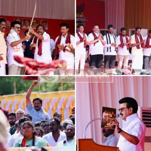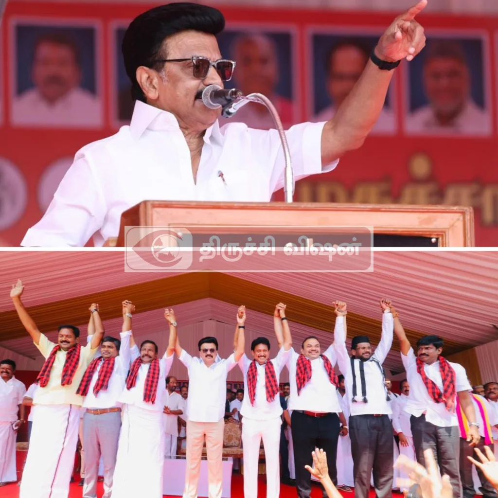 திருச்சி தென்னூர் உழவர் சந்தை மைதானத்தில் நடந்த பொதுக்கூட்டத்தில் கலந்து கொண்டு முதலமைச்சர் மு க ஸ்டாலின் உரையாற்றினார்.