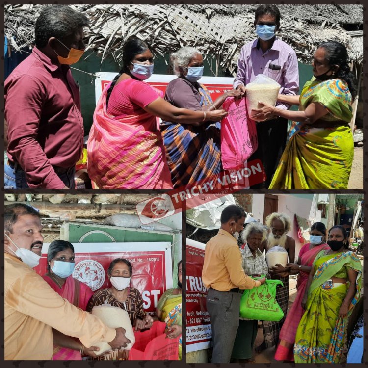 திருச்சி எம்பவர் டிரஸ்ட் சார்பில் கொரானா நிவாரண பொருட்கள் பெரிய மிளகுபாறை குடிசைவாழ் பகுதியில் உள்ள முதியோர்களுக்கு நேற்று வழங்கியுள்ளனர்.வறுமைக்கோட்டிற்கு கீழ் உள்ள மூன்று முதியோர் தம்பதியினரை தேர்வு செய்து அவர்களுக்கு தேவையான அரிசி உட்பட 14 மளிகை பொருள்கள் அடங்கிய ஒரு தொகுப்பு வழங்கியுள்ளனர்.