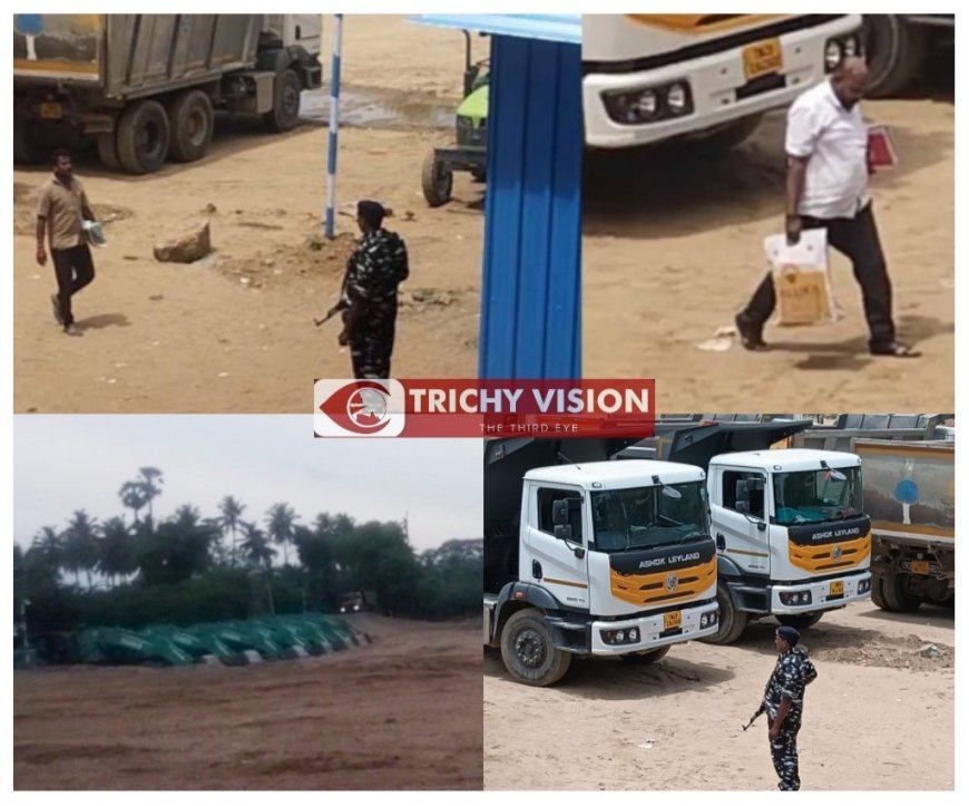 திருச்சி மாவட்டத்தில் தாளக்குடி, நொச்சியம் மாதவ பெருமாள் கோவில், கூகூர் ஆகிய பகுதிகளில் அரசு மணல் குவாரி செயல்பட்டு வருகிறது. இந்த குவாரியில் அரசு அனுமதித்த அளவை விட அதிக அளவில் மணல் அள்ளிய அதிகமான விலைக்கு விற்ற குற்றச்சாட்டு இருந்துவருகிறது. குறிப்பாக மணல் குவாரியில் மூன்று அடி தான் மணல் அள்ள வேண்டும் என விதிகள் உள்ள நிலையில் 10 அடிக்கு மேல் மணல் அள்ளப்பட்டுள்ளது.