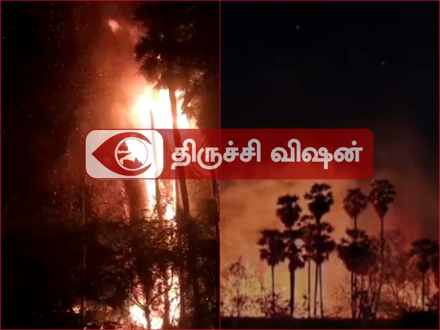 பெட்டவாய்த்தலை அருகே காவிரி நகர் காவிரி ஆற்றுப்பகுதியில் வனத்துறை கட்டுப்பாட்டில் பனை தைல மரங்கள் அடங்கிய வனம் உள்ளது. இதில் நேற்று இரவு தீ விபத்து ஏற்பட்டு பனை தைல மரங்கள் 50 உயரத்திற்கு எரிந்தது. விபத்தை அறிந்ததும் திருச்சி தீயணைப்பு துறையினர் சம்பவ இடத்திற்கு வந்து தீ மேலும் பரவாமல் போராடி அணைத்தனர்