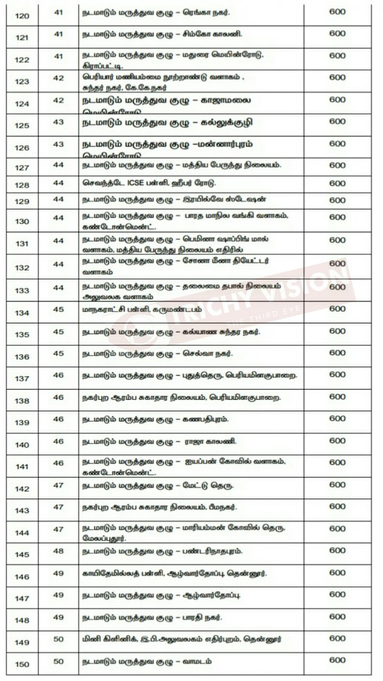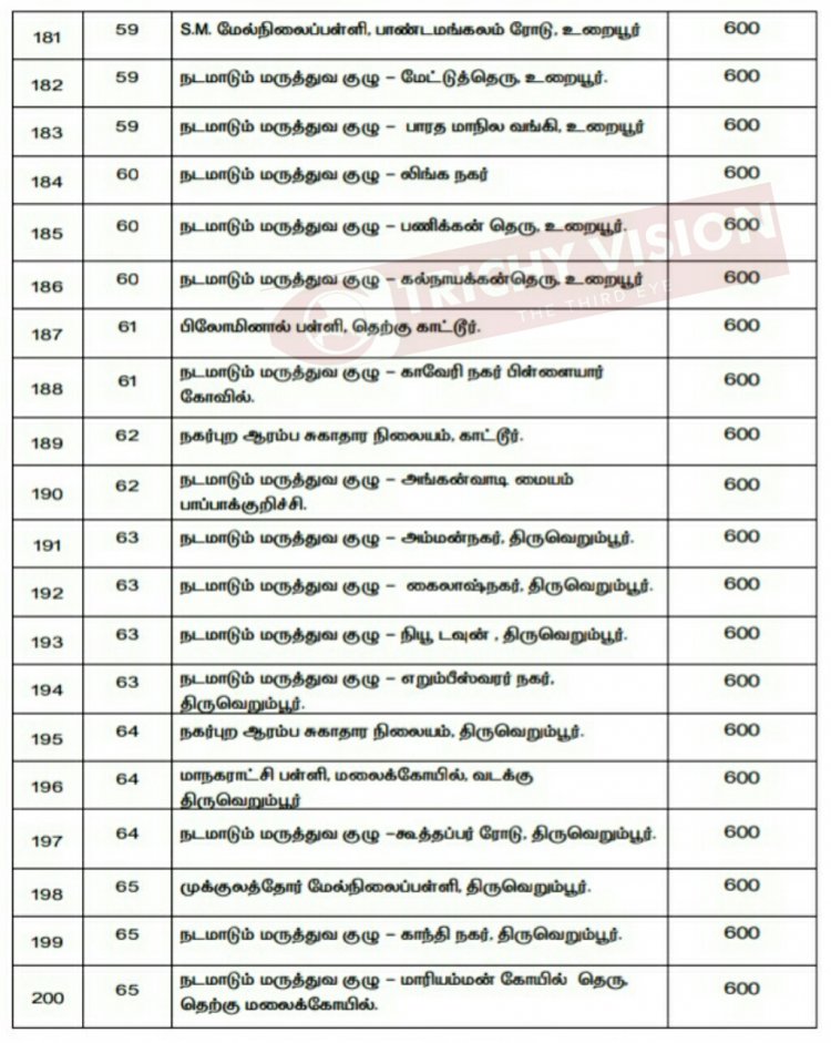 கீழ்குறிப்பிட்டுள்ள 200 இடங்களில் நாளை (21.11.2021) அன்று காலை 7.00 மணி முதல் இரவு 7.00 மணி வரை மாபெரும் கொரோனா தடுப்பூசி முகாம் நடைபெற உள்ளது.