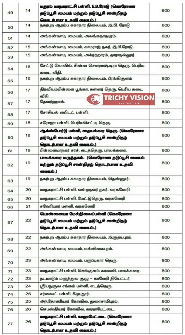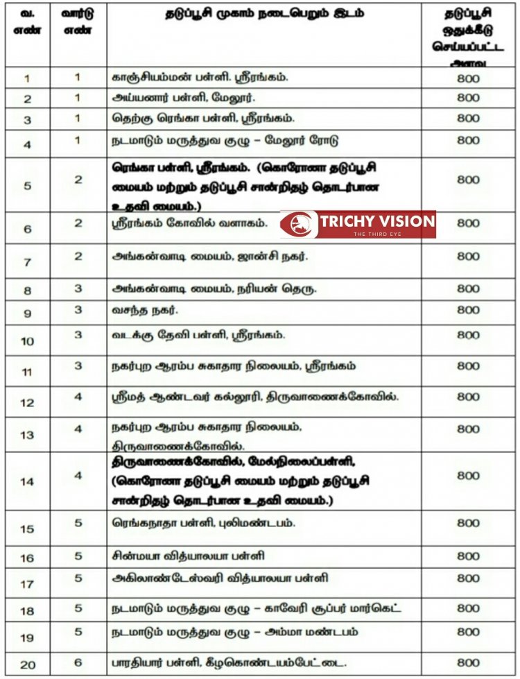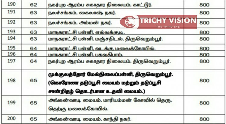 திருச்சி மாநகராட்சி பகுதிகளில் 200 இடங்களில் நாளை (28.11.2021) காலை 7 மணி முதல் இரவு 7 மணி வரை கொரோனா தடுப்பூசி சிறப்பு முகாம்கள் நடைபெற உள்ளது.