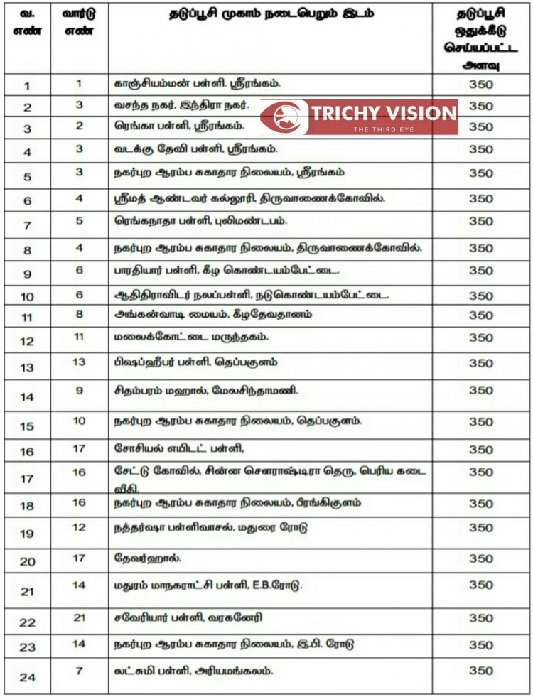 திருச்சி மாநகரில் 197 இடங்களில் நாளை (26.12.2021) மாபெரும் கோவிட் தடுப்பு ஊசி முகாமில் கோவிசீல்டு, கோவாக்சின் தடுப்பு ஊசிகள் போடப்படும் என மாநகராட்சி நிர்வாகம் அறிவித்துள்ளது.