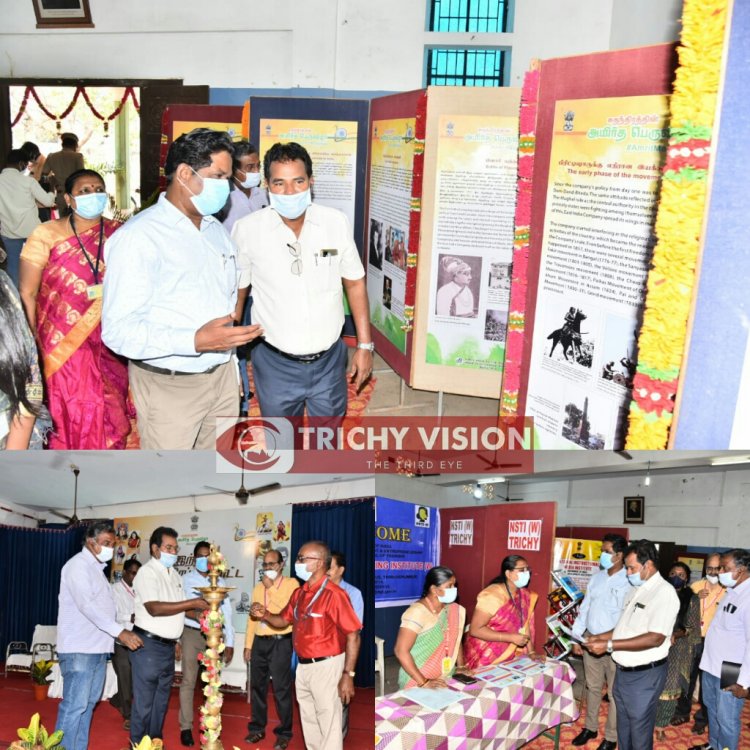 தமிழ்நாடு, புதுச்சேரி மண்டல மக்கள் தொடர்பு அலுவலகம் சார்பில் 75 வது சுதந்திரத்தின் அமிர்த பெருவிழாவினை முன்னிட்டு இந்திய சுதந்திர போராட்ட வரலாறு கண்காட்சி திருச்சி மத்திய பேருந்து நிலையம் அருகே உள்ள ஜான் வெஸ்ட்ரி பள்ளி வளாகத்தில் கள விளம்பரத்துறை அலுவலர் பத்மநாபன் தலைமையில் நடைபெற்றது. இதில் தகவல் மற்றும் ஒலிபரப்பு துறை அமைச்சகத்தின் கீழ் பத்திரிக்கை தகவல் அலுவலகத்தின் கூடுதல் தலைமை இயக்குனர் அண்ணாதுரை கலந்து கொண்டு அரியவகை புகைப்பட கண்காட்சியை திறந்து வைத்து பார்வையிட்டார். பின்னர் இந்நிகழ்ச்சி குறித்த கையேடுகளை வெளியிட்டார்.