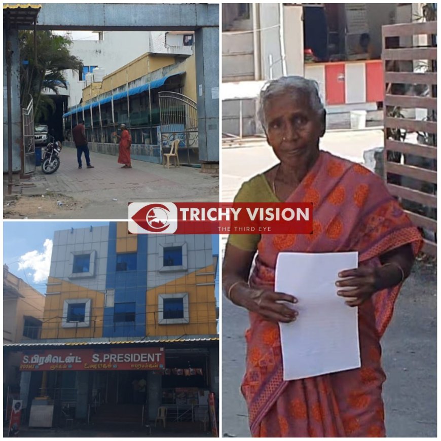 திருச்சி மாவட்டம் சமயபுரம் மாரியம்மன் கோவில் அருகே உள்ள பிரசிடெண்ட் ஹோட்டல் மற்றும் தங்கு விடுதி திருமண மண்டபம் செயல்பட்டு வருகிறது. இந்த ஹோட்டலில் 20க்கும் மேற்பட்டோர் பணிபுரிந்து வருகிறார்கள். இந்த ஹோட்டலில், சுத்தம் செய்வதற்காக ஐந்துக்கும் மேற்பட்ட வயதானவர்கள் மட்டுமே பணியமர்த்தப்பட்டு இருப்பதாக கூறப்படுகிறது .