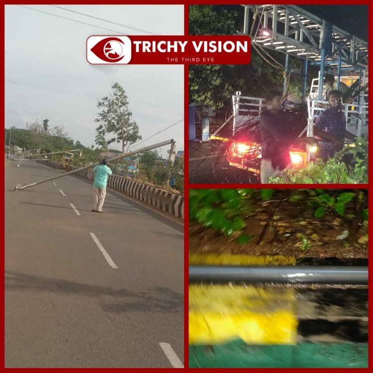 கடந்த இரண்டு மாதமாக முதலில் கன மழை பெய்த பொழுது திருச்சி மாநகராட்சியின் அருகாமையில் மின்கம்பங்கள் இரவில் சாய்ந்தன. அதேபோல் மாநகராட்சி எதிராகவும் இருந்த மின்கம்பங்கள் சாய்ந்தது. இது தற்பொழுது மாநகராட்சி பகுதிகளில் தொடர் கதையாகி விட்டது .