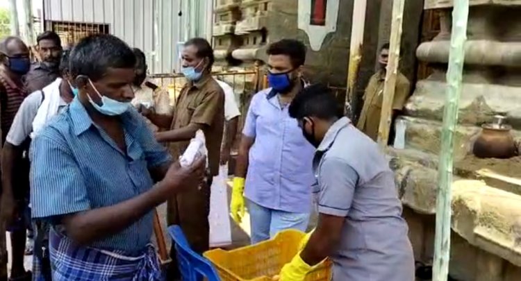 இந்நிலையில் கோவில் தினந்தோறும் நடைபெற்று வரும் அன்னதானம் தடைபட்ட நிலையில் ஸ்ரீரங்கம் அருள்மிகு அரங்கநாத சுவாமி திருக்கோயில் இன்று(28.04.2021) 350 நபர்களுக்கு அன்னதான உணவு பொட்டலங்கள் வழங்கப்பட்ட து.
