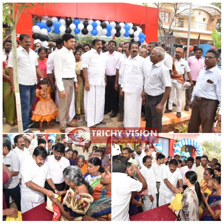 திருச்சிராப்பள்ளி மாநகராட்சிக்கு உட்பட்ட கிராபட்டி காந்தி நகர் பகுதியில் சட்டமன்ற உறுப்பினர் தொகுதி மேம்பாட்டு நிதி திட்டத்தின் கீழ் ரூபாய் 11.00 லட்சம் மதிப்பீட்டில் கட்டப்பட்டுள்ள புதிய நியாய விலைக்கடையினை இன்று (08.02.2024 அமைச்சர் கே.என்.நேரு திறந்து வைத்து குடும்ப அட்டைதாரர்களுக்கு உணவு பொருட்களை வழங்கினார். இந்நிகழ்வில், மாவட்ட ஆட்சித் தலைவர் மா.பிரதீப் குமார், மாநகராட்சி மேயர் மு.அன்பழகன், மாநகராட்சி ஆணையர் மரு. இரா. வைத்திநாதன், நகர பொறியாளர் பி.சிவபாதம், மண்டல தலைவர்கள், மாமன்ற உறுப்பினர்கள்,அரசு அலுவலர்கள், பொதுமக்கள் கலந்து கொண்டனர்.