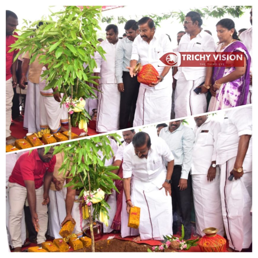 திருச்சி மாவட்டம் உப்பிலியாபுரம் ஒன்றியம், தளுகை ஊராட்சியில் ரூ.6.45 கோடி மதிப்பில் கட்டப்படவுள்ள பெரியார் நினைவு சமத்துவபுரத்திற்கு நகராட்சி நிருவாகத்துறை அமைச்சர் கே.என்.நேரு இன்று (15.07.2024) பூமி பூஜை செய்து அடிக்கல் நாட்டினார்.