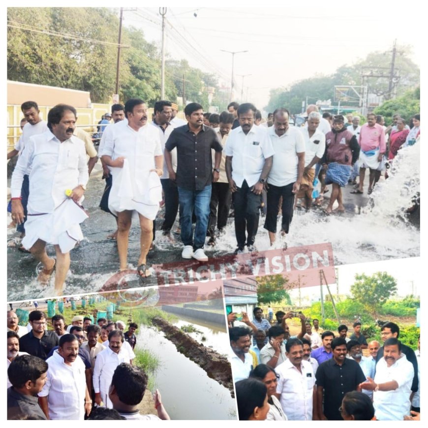 திருச்சி கடந்த சில நாட்களாக பெய்த தொடர் மழையின் காரணமாக திருச்சி மாநகராட்சிக்கு உட்பட்ட பகுதிகளில் தேங்கியுள்ள மழைநீரை வெளியேற்றும் பணிகளை நகராட்சி நிருவாகத்துறை கே.என்.நேரு அவர்கள் இன்று நேரில் பார்வையிட்டு ஆய்வு செய்தார். மேலும் தேசிய கல்லூரி அருகில் தேங்கியுள்ள மழை நீரை அகற்றும் பணிகளையும், கருமண்டபம் குளத்துக்கரை, பிராட்டியூர், காவிரி நகர், கொல்லாங்குளம் ஏரி ஆகிய பகுதிகளை பார்வையிட்டார்.