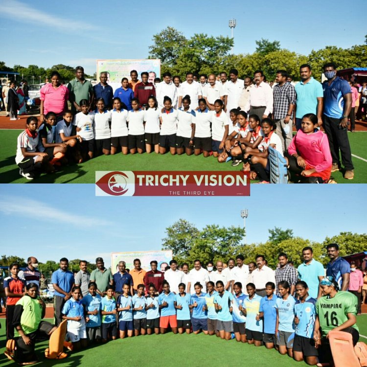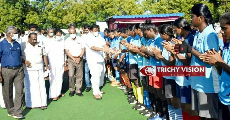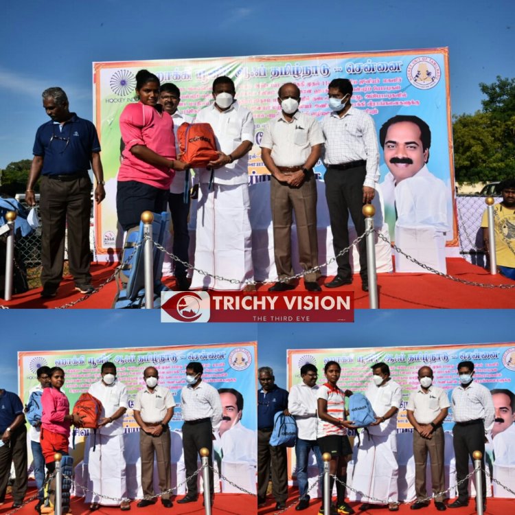 திருச்சிராப்பள்ளி மாவட்ட அண்ணா விளையாட்டு அரங்கில், ஹாக்கி விளையாட்டிற்கான சீனியர் மற்றும் ஜீனியர் வீராங்கனைகளின் 10 நாள் பயிற்சி முகாம் நிறைவடைந்து, ஹாக்கி